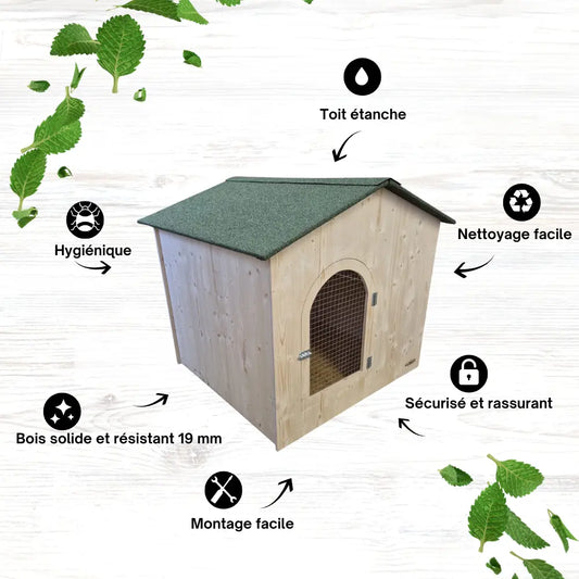 Les chiens d’extérieur ont besoin d’un abri résistant et confortable. Nos niches en bois sont fabriquées avec des matériaux de qualité, offrant une protection optimale contre le froid et l’humidité. Faciles à entretenir, elles assurent à votre compagnon un espace douillet et sécurisé.