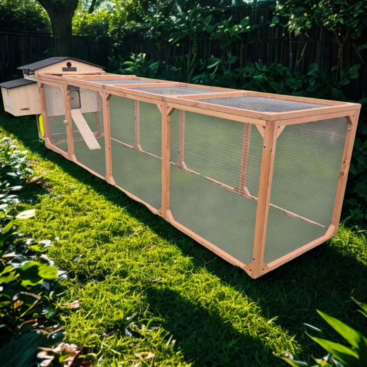 Nos enclos sont conçus en bois Douglas imputrescible de 35 mm d’épaisseur, assurant une résistance maximale aux intempéries et aux attaques extérieures. Le grillage en acier galvanisé protège efficacement contre les renards, fouines et autres prédateurs. Leur structure lourde et solide empêche tout renversement ou déplacement involontaire, garantissant une sécurité durable.